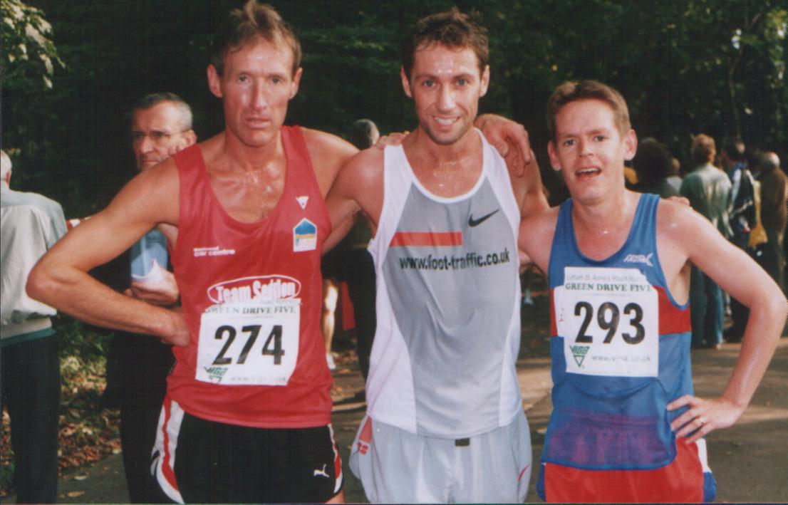 Winning the Green Drive 5 at Lytham. This was my second win at this event, having first won 2 years earlier in 2003 ( 25:15 )Pictured here with Phil Leybourne ( 3rd 26:14 ) and Steve Hallas ( 2nd 26:05 ), me centre 25:23